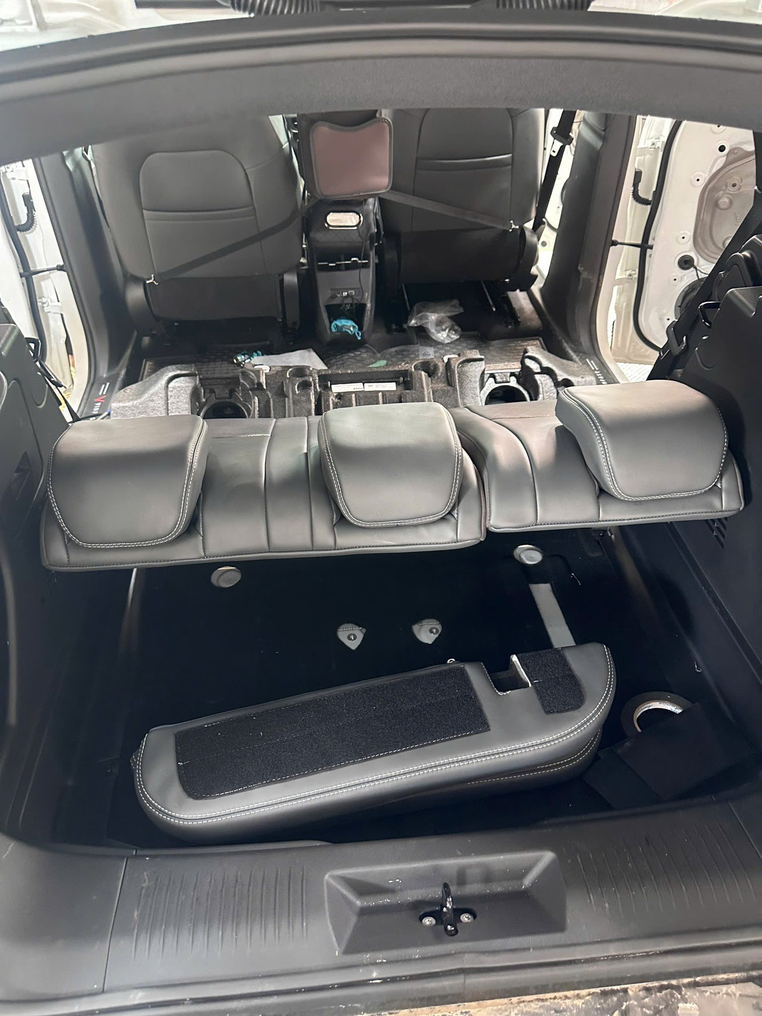 Phụ kiện VinFast sử dụng phương pháp điều chỉnh lại pát giữ ghế và điểm tựa khung ngồi, đồng thời xử lý phần ốp nhựa phía sau để ghế có thể ngả sâu hơn. Toàn bộ quá trình được tiến hành cẩn thận, không phá vỡ kết cấu chính của xe, đảm bảo an toàn và tính thẩm mỹ.